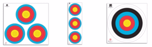 Tavlorna finns i fyra olika storlekar: 20, 40, 60 och 80 cm i diameter. Skjutavståndet varierar mellan 5 och 60 meter.